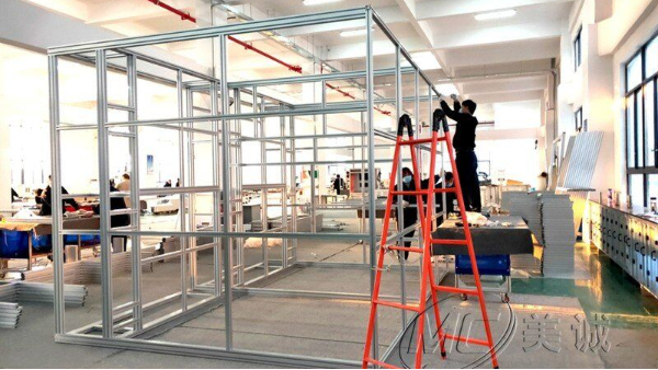 工業(yè)鋁型材框架又稱為框架鋁型材,是有擠壓工業(yè)鋁型材和專用工業(yè)鋁型材配件連接所組成的萬用系統(tǒng)框架的統(tǒng)稱。