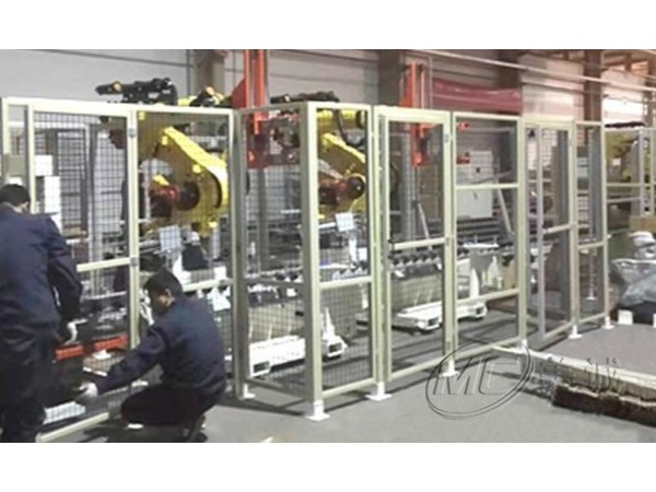 機器人護罩是在設備外圍建立安全范圍防護措施,以劃分安全范圍,阻隔人或物與設備直接接觸,起到安全警示作用,常和報警及斷電設備配套使用??蚣懿糠质褂娩X型材,配合絲網(wǎng)、亞克力、PC等各類板材,通過鋁型材配件安裝膨脹螺栓連接鋁型材立柱和地面。