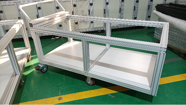 儀表箱轉(zhuǎn)運(yùn)車主要是用在車間作為周轉(zhuǎn)運(yùn)輸之用。用鋁合金型材定做周轉(zhuǎn)車的主要原因就是其防腐耐磨性能好,使用壽命特別長,不像噴塑鋼材容易出現(xiàn)掉漆生銹等問題。周轉(zhuǎn)車的定做一般根據(jù)其承載要求來的,通體用鋁型材專用配件連接,無焊接,非常環(huán)保實(shí)用。定做周轉(zhuǎn)車、料箱選擇美誠鋁業(yè)。